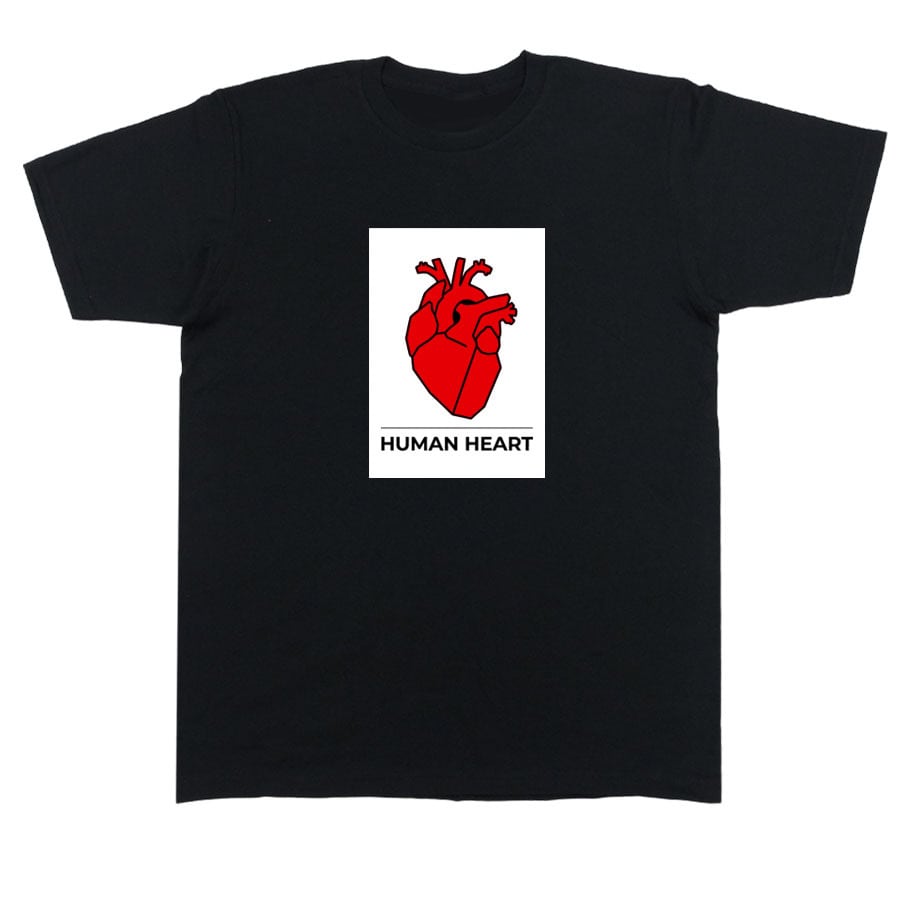半袖Tシャツ カットソー トップス ミドル丈 メンズ レディース ユニセックス キッズ XSサイズ Sサイズ Mサイズ Lサイズ XLサイズ ロゴ Uネック クルーネック おしゃれ かわいい おもしろ オリジナル ビッグシルエット 4oz 5oz ルームウェア 普段着 部屋 アウトドア タウンユース カジュアルコーデ パジャマ オールシーズン 春夏秋冬 パロディ ペイント プリント グラフィック アニメ マンガ イラスト デザイン 家庭洗濯 コットン生地 黒 心臓 ハート ココロ 人間 human heart ワンポイント