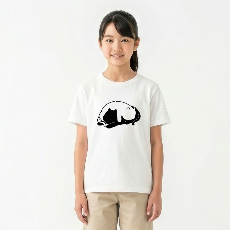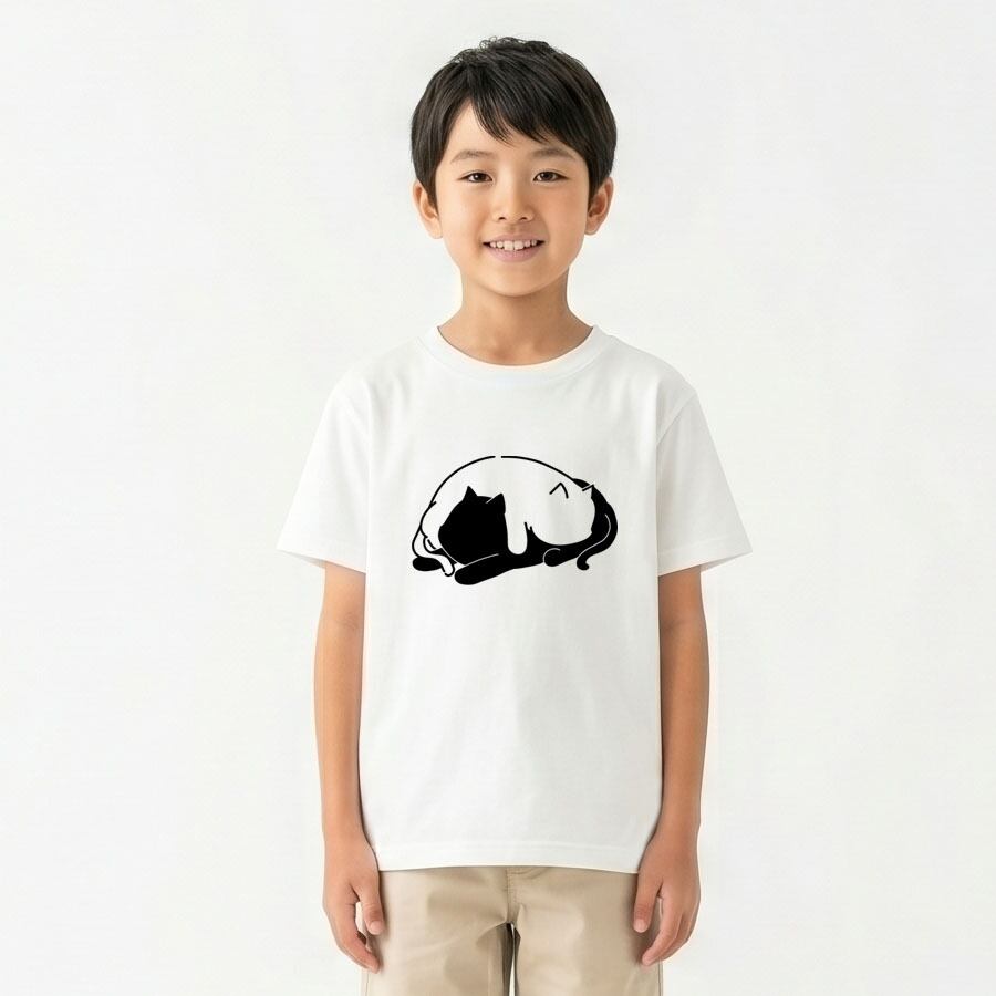 半袖Tシャツ カットソー トップス ミドル丈 ユニセックス キッズ 子供 小人 サイズ 100 110 120 130 140 150 キッズファッション ロゴ Uネック クルーネック おしゃれ おもしろ かわいい ネタ 面白 ユニーク オリジナル ビッグシルエット ルームウェア 普段着 部屋 アウトドア タウンユース カジュアルコーデ パジャマ オールシーズン 春夏秋冬 パロディ プリント グラフィック アニメ マンガ イラスト デザイン 家庭洗濯 コットン生地 白 黒 アイコン アニマル 動物 猫 ネコ CAT