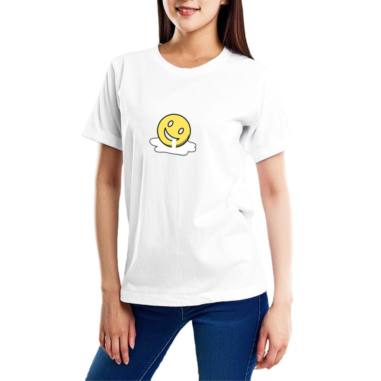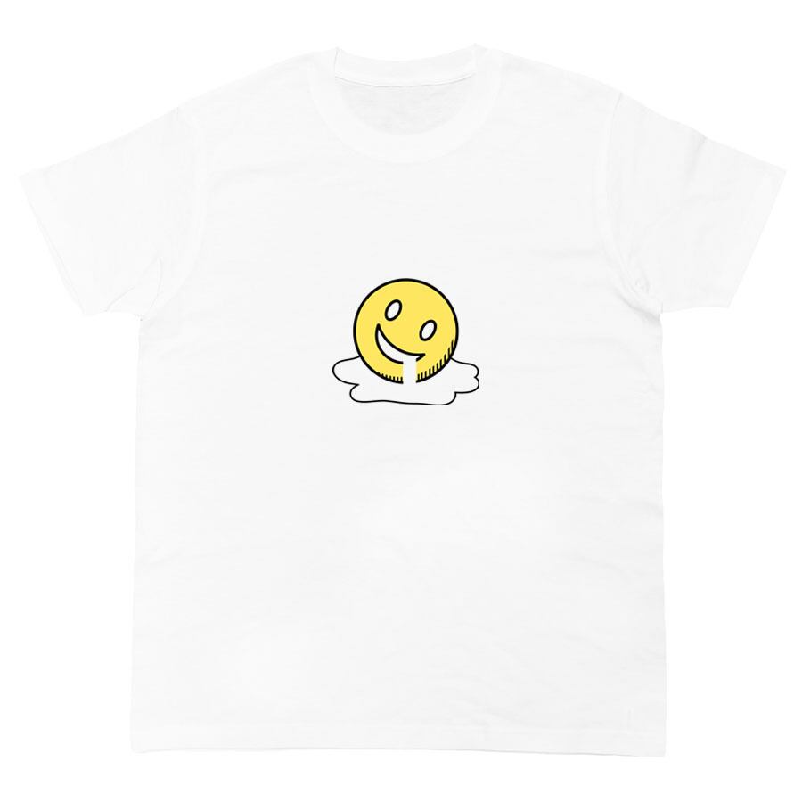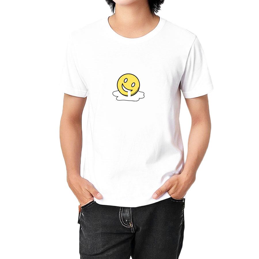 (半袖Tシャツ カットソー トップス ミドル丈 メンズ レディース ユニセックス キッズ XSサイズ Sサイズ Mサイズ Lサイズ XLサイズ ロゴ Uネック クルーネック おしゃれ かわいい おもしろ オリジナル ビッグシルエット 4oz 5oz ルームウェア 普段着 部屋 アウトドア タウンユース カジュアルコーデ パジャマ オールシーズン 春夏秋冬 パロディ ペイント プリント グラフィック アニメ マンガ イラスト デザイン 家庭洗濯 コットン生地 白 ホワイト スマイリー スマイル 笑顔 溶ける ドロップ よだれ)