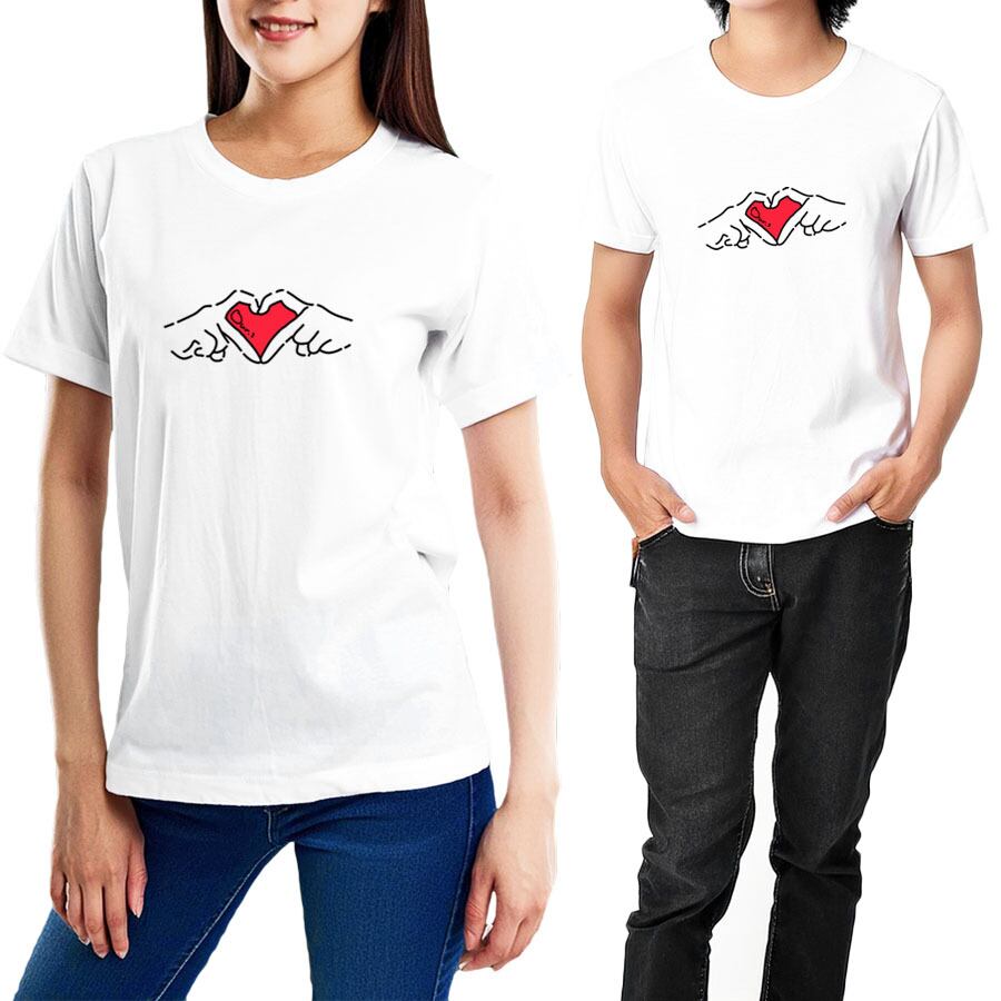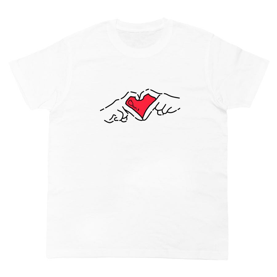 (半袖Tシャツ カットソー トップス ミドル丈 メンズ レディース ユニセックス キッズ XSサイズ Sサイズ Mサイズ Lサイズ XLサイズ ロゴ Uネック クルーネック おしゃれ かわいい おもしろ オリジナル ビッグシルエット 4oz 5oz ルームウェア 普段着 部屋 アウトドア タウンユース カジュアルコーデ パジャマ オールシーズン 春夏秋冬 パロディ ペイント プリント グラフィック アニメ マンガ イラスト デザイン 家庭洗濯 コットン生地 白 ホワイト ゆびハート ココロ ワンポイント)