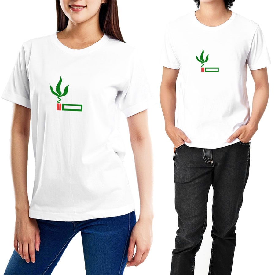 (半袖Tシャツ カットソー トップス ミドル丈 メンズ レディース ユニセックス キッズ XSサイズ Sサイズ Mサイズ Lサイズ XLサイズ ロゴ Uネック クルーネック おしゃれ かわいい おもしろ オリジナル ビッグシルエット 4oz 5oz ルームウェア 普段着 部屋 アウトドア タウンユース カジュアルコーデ パジャマ オールシーズン 春夏秋冬 パロディ ペイント プリント グラフィック アニメ マンガ イラスト デザイン 家庭洗濯 コットン生地 白 ホワイト はっぱ 葉 リーフ 大麻 マリファナ ジョイント ストリート系 裏原)