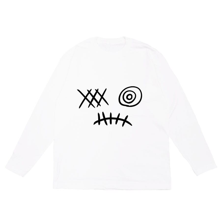 (長袖Tシャツ ロングスリーブ ロンT ロングシャツ カットソー トップス リブ ミドル丈 メンズ レディース ユニセックス キッズ XSサイズ Sサイズ Mサイズ Lサイズ XLサイズ ロゴ Uネック クルーネック おしゃれ かわいい おもしろ オリジナル ビッグシルエット 4oz 5oz ルームウェア 普段着 部屋 アウトドア タウンユース カジュアルコーデ パジャマ オールシーズン 春夏秋冬 パロディ ペイント プリント グラフィック アニメ マンガ イラスト デザイン 家庭洗濯 コットン生地 白 ホワイト 顔 フェイス 文字 顔文字)