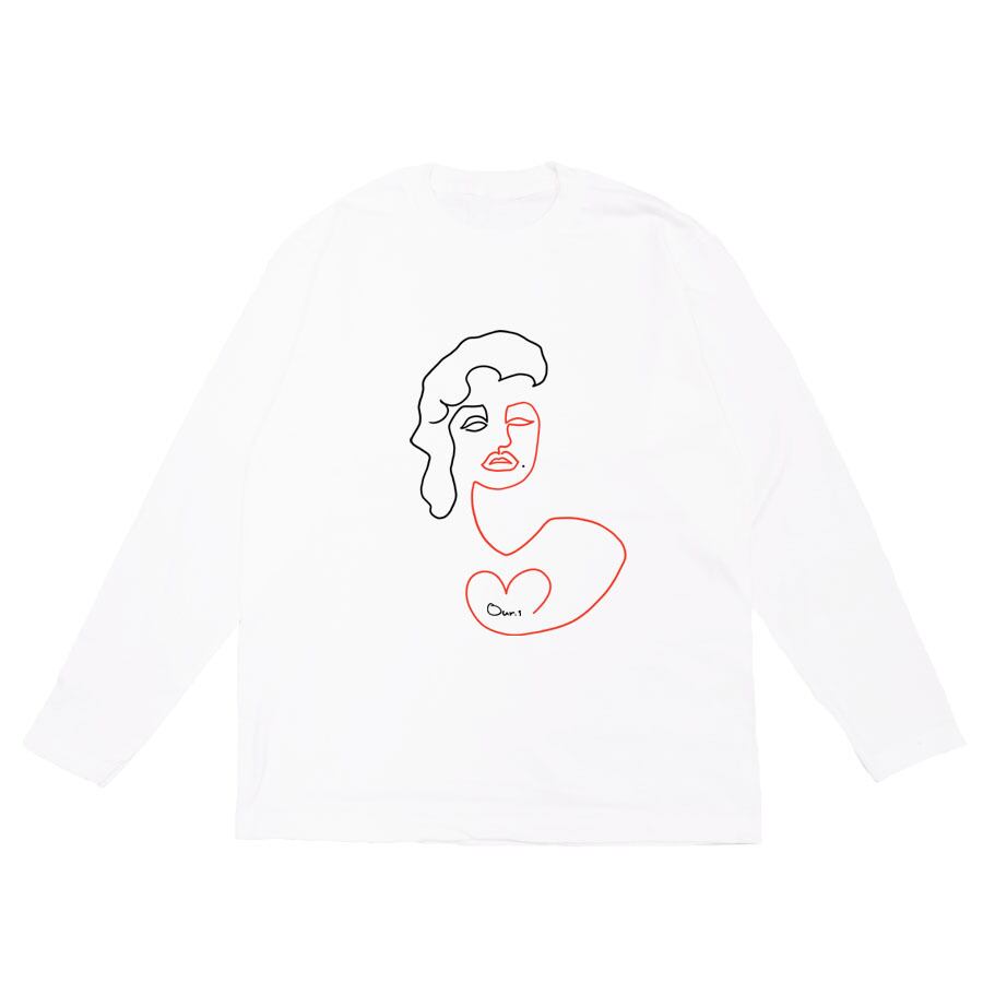 (長袖Tシャツ ロングスリーブ ロンT ロングシャツ カットソー トップス リブ ミドル丈 メンズ レディース ユニセックス キッズ XSサイズ Sサイズ Mサイズ Lサイズ XLサイズ ロゴ Uネック クルーネック おしゃれ かわいい おもしろ オリジナル ビッグシルエット 4oz 5oz ルームウェア 普段着 部屋 アウトドア タウンユース カジュアルコーデ パジャマ オールシーズン 春夏秋冬 パロディ ペイント プリント グラフィック アニメ マンガ イラスト デザイン 家庭洗濯 コットン生地 白 ホワイト 女性 人物 ひと 一筆書き ワンストローク モデル マリリンモンロー風 marilyn monroe セクシー)