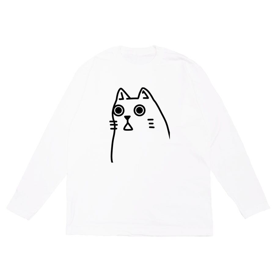 (長袖Tシャツ ロングスリーブ ロンT ロングシャツ Tシャツ カットソー トップス リブ ミドル丈 メンズ レディース ユニセックス キッズ XSサイズ Sサイズ Mサイズ Lサイズ XLサイズ ロゴ Uネック クルーネック おしゃれ かわいい おもしろ ネタ 面白 ユニーク オリジナル ビッグシルエット 4oz 5oz ルームウェア 普段着 部屋 アウトドア タウンユース カジュアルコーデ パジャマ オールシーズン 春夏秋冬 パロディ ペイント プリント グラフィック アニメ マンガ イラスト デザイン 家庭洗濯 コットン生地 白 ホワイト 動物 アニマル 猫 neko ネコ ビックリ インパクト ミーム)