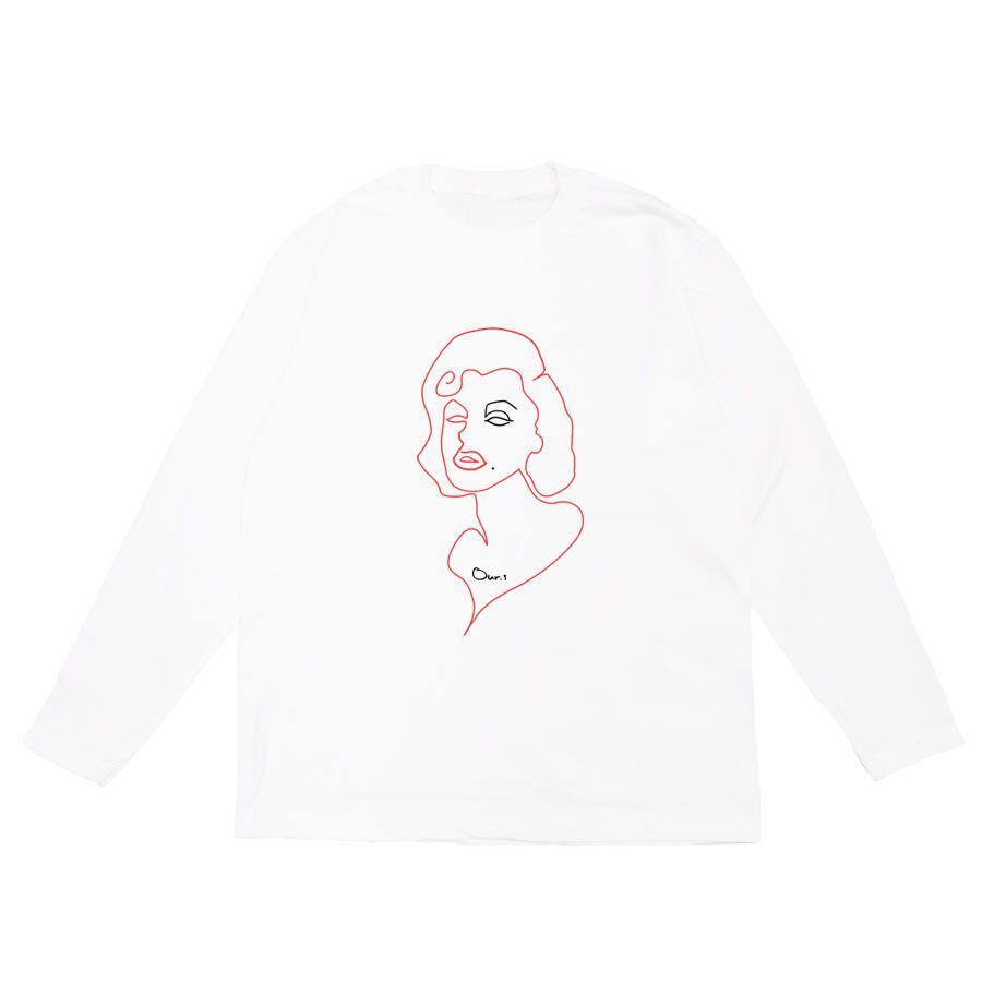 (長袖Tシャツ ロングスリーブ ロンT ロングシャツ カットソー トップス リブ ミドル丈 メンズ レディース ユニセックス キッズ XSサイズ Sサイズ Mサイズ Lサイズ XLサイズ ロゴ Uネック クルーネック おしゃれ かわいい おもしろ オリジナル ビッグシルエット 4oz 5oz ルームウェア 普段着 部屋 アウトドア タウンユース カジュアルコーデ パジャマ オールシーズン 春夏秋冬 パロディ ペイント プリント グラフィック アニメ マンガ イラスト デザイン 家庭洗濯 コットン生地 白 ホワイト 女性 人物 ひと 一筆書き ワンストローク モデル マリリンモンロー風 marilyn monroe セクシー)