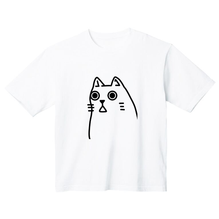 (半袖Tシャツ カットソー トップス ロング丈 ビッグT 大き目 ゆったり ダボ フリー ビッグシルエット あえて わざと メンズ レディース ユニセックス キッズ フリーサイズ XXLサイズ ロゴ Uネック クルーネック おしゃれ かわいい おもしろ オリジナル ビッグシルエット 5oz ルームウェア 普段着 部屋 アウトドア タウンユース カジュアルコーデ パジャマ オールシーズン 春夏秋冬 パロディ ペイント プリント グラフィック アニメ マンガ イラスト デザイン 家庭洗濯 コットン生地 白 ホワイト 動物 アニマル 猫 neko ネコ CAT インパクト でか ミーム)